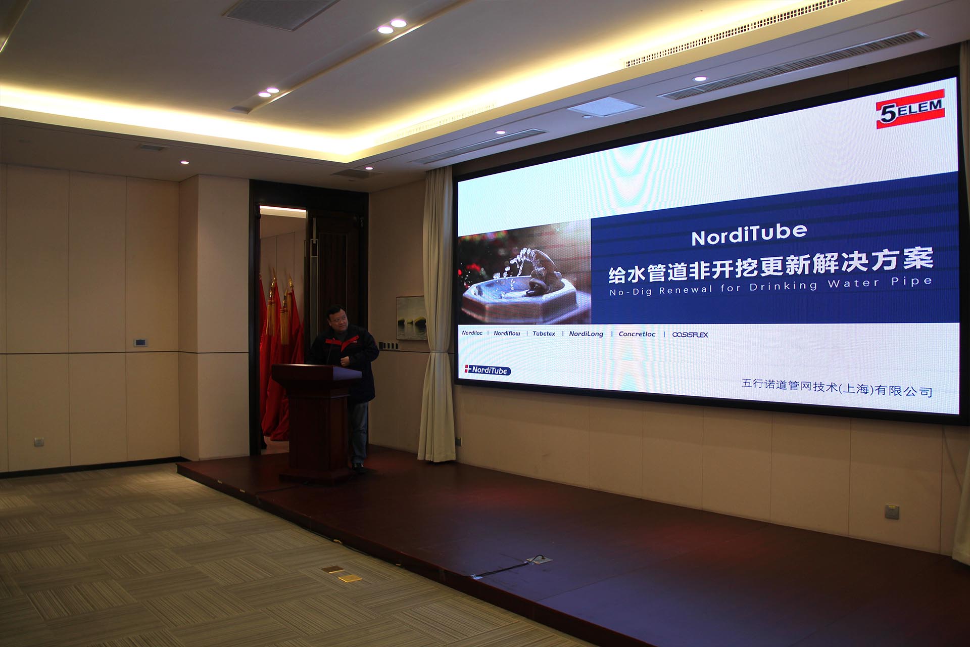 緊接著,五行科技股份有限公司總工程師秦慶戊先生分享主題演講“NordiTube給水管道非開挖更新解決方案”,與參會嘉賓共同探討城鎮(zhèn)供水管網(wǎng)更新建設(shè),分享供水管道非開挖更新的技術(shù)成果。